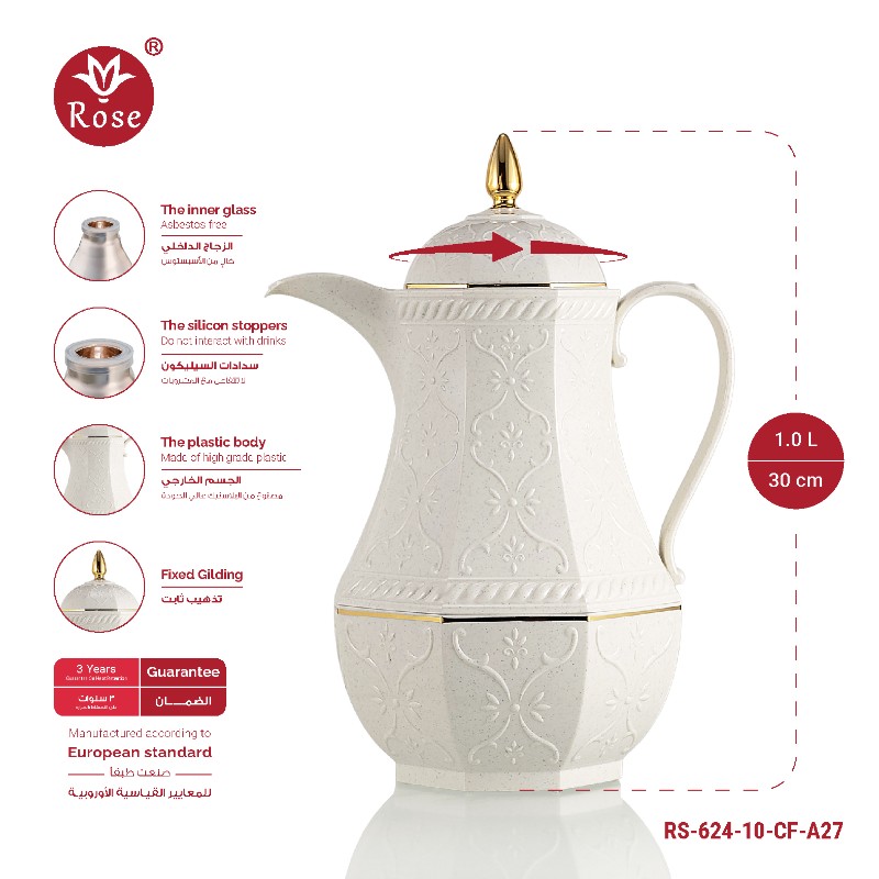كما أن القارورة الداخلية مُصنعة من أنقى أنواع الزجاج الخالي من مادة الاسبستوس الضارة.
