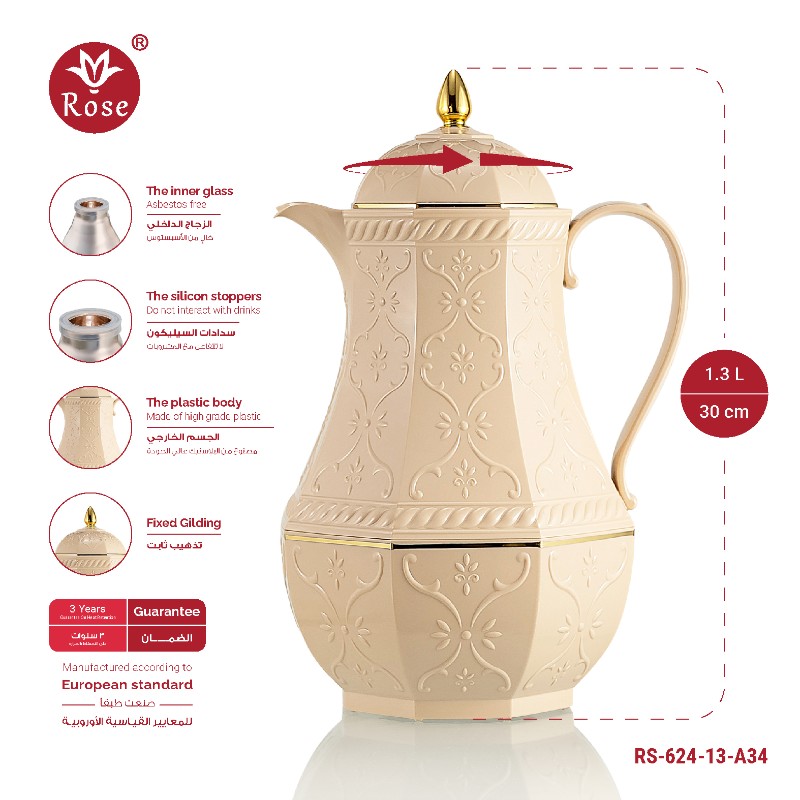 إن هذا المنتج مضمون لمدة ثلاث سنوات على الاحتفاظ بالحرارة